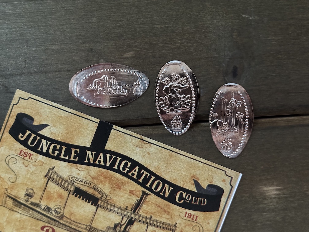 Third and final machine features, you guessed it, 3 new penny designs with images of the Jungle Cruise, a Jungle Cruise Elephant, and the Trapped Safari up a pole a classic scene from the Jungle Cruise.
