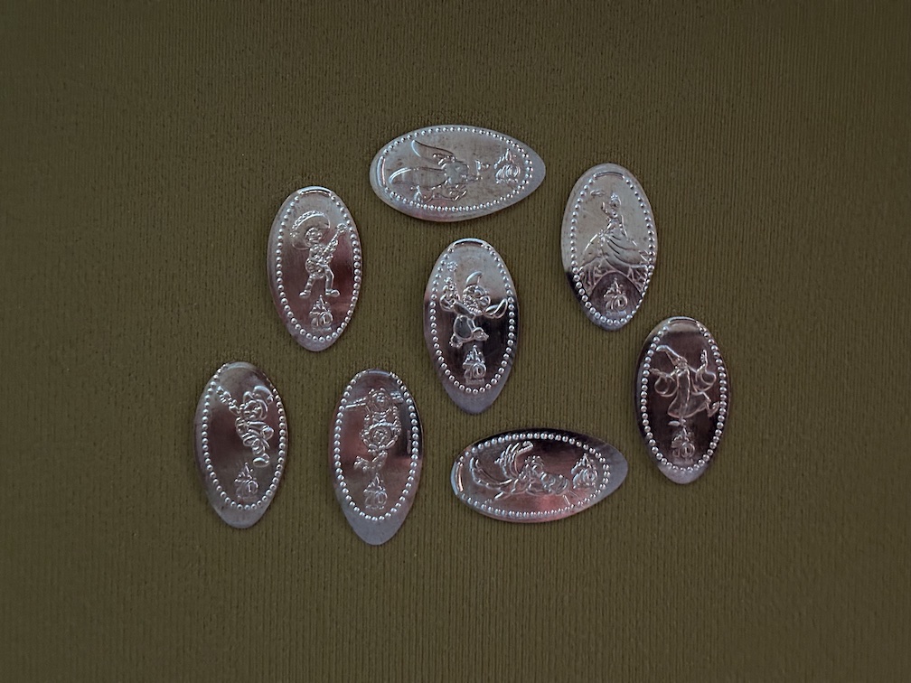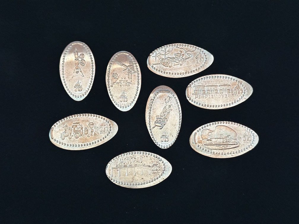 After you take a cruise on It’s a Small World make sure you stop in to the Gift Shop for the next penny machine. Here we have another 8-design set featuring some Fantasyland favorites including Dumbo, the Teacups, King Arthur Carousel, Mr. Toad’s Wild Ride, It’s a Small World, the Matterhorn, Peter Pan’s Flight, and the Casey Jr. Circus Train.