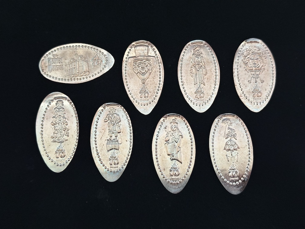 Continuing our tour around the park we next find ourselves inside New Orleans Square looking for The Court des Anges. Here is where we find one of my all-time favorite penny machines that looks like it came right out of the Haunted Mansion. This machine has 8 new penny designs featuring some of the happy haunts like Madame Leota, Little Leota, The Hatbox Ghost, Tightrope Daisy de la Cruz, the Quicksand Men, Constance Hatchaway, the Dynamite guy, and the Haunted Mansion itself.