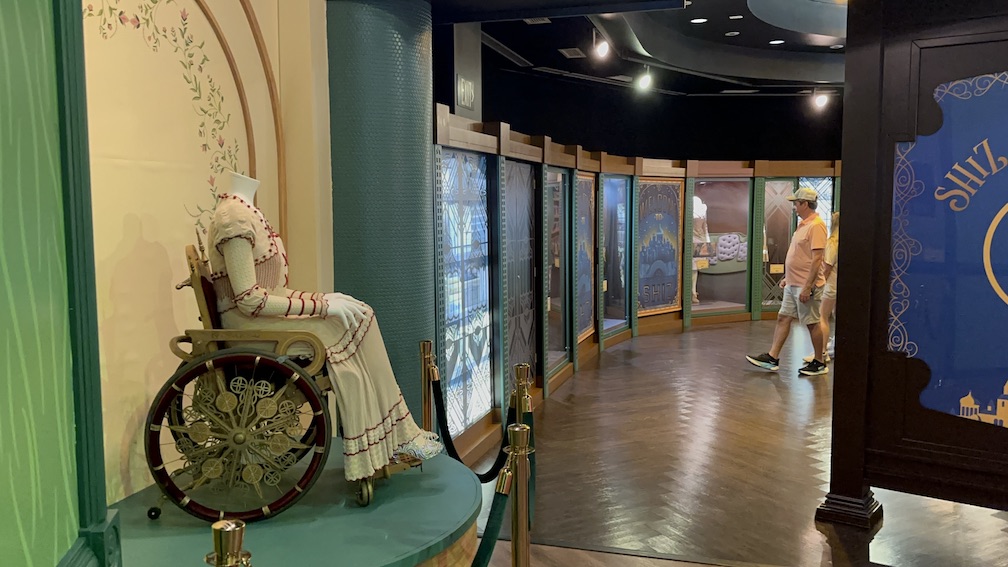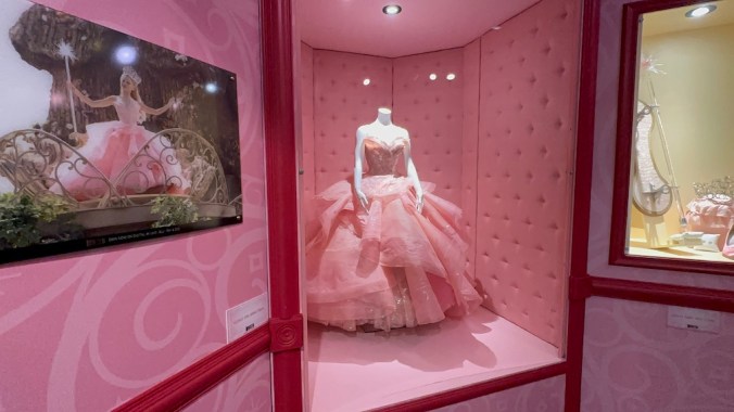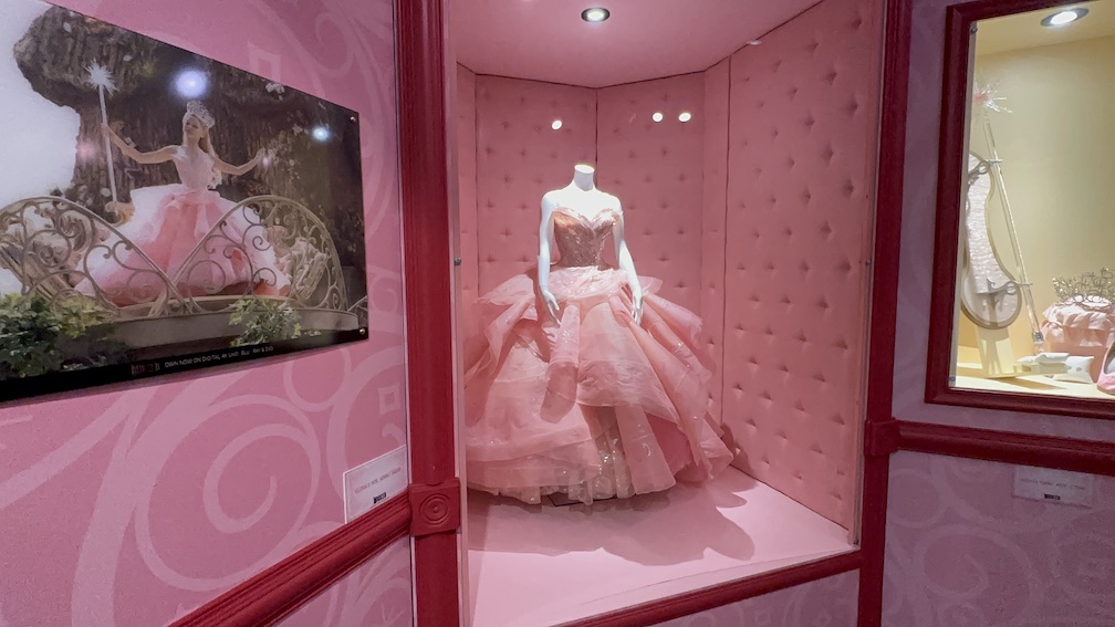 Glinda’s beautiful dress is on display along with photos from the movie.