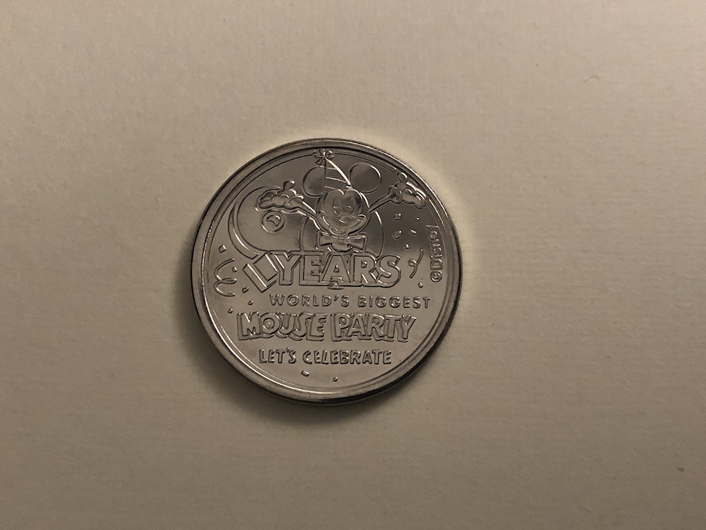 Above is a picture of the actual medallion that I picked up for my collection. The cost is also the same as before, $10 for 3 medallions or $5 each. Definitely a bit pricey but these are not plastic or cheaply made coins, they have quite some weight to them and the designs have very nice detail with Mickey and his birthday hat. Plus I love the slogan World’s Biggest Mouse Party. This will make a nice addition to my Mickey’s 90th Celebration set of pressed pennies that the parks released earlier this year. If you want to read about those pennies you can check it out here.