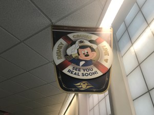 We were scheduled to check-in at 10:30 am so we got up early and headed over to Port Canaveral in plenty of time. This was our first cruise so we weren’t sure exactly what we were doing but Disney made it very simple. We parked in the garage right across from the terminal and as we walked over towards the security area our ship was in the distance waiting for us.