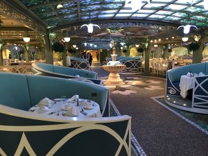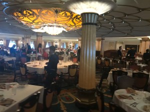 The Disney cruise lines have what they call rotational dining so your evening dinner location changes each night. The rotation is listed on your room card, and we were scheduled to eat here for dinner but opted for a different kind of buy-up option that I’ll go over in a bit. So we figured since we would miss this place for dinner why not go inside for breakfast.
