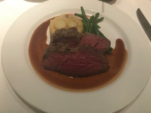 The food here was nice, not Palo quality but still very good. My wife and I both started with the french onion soup which is a guilty pleasure of ours. My wife had a horseradish crusted salmon which she really enjoyed, and I had a sliced sirloin.