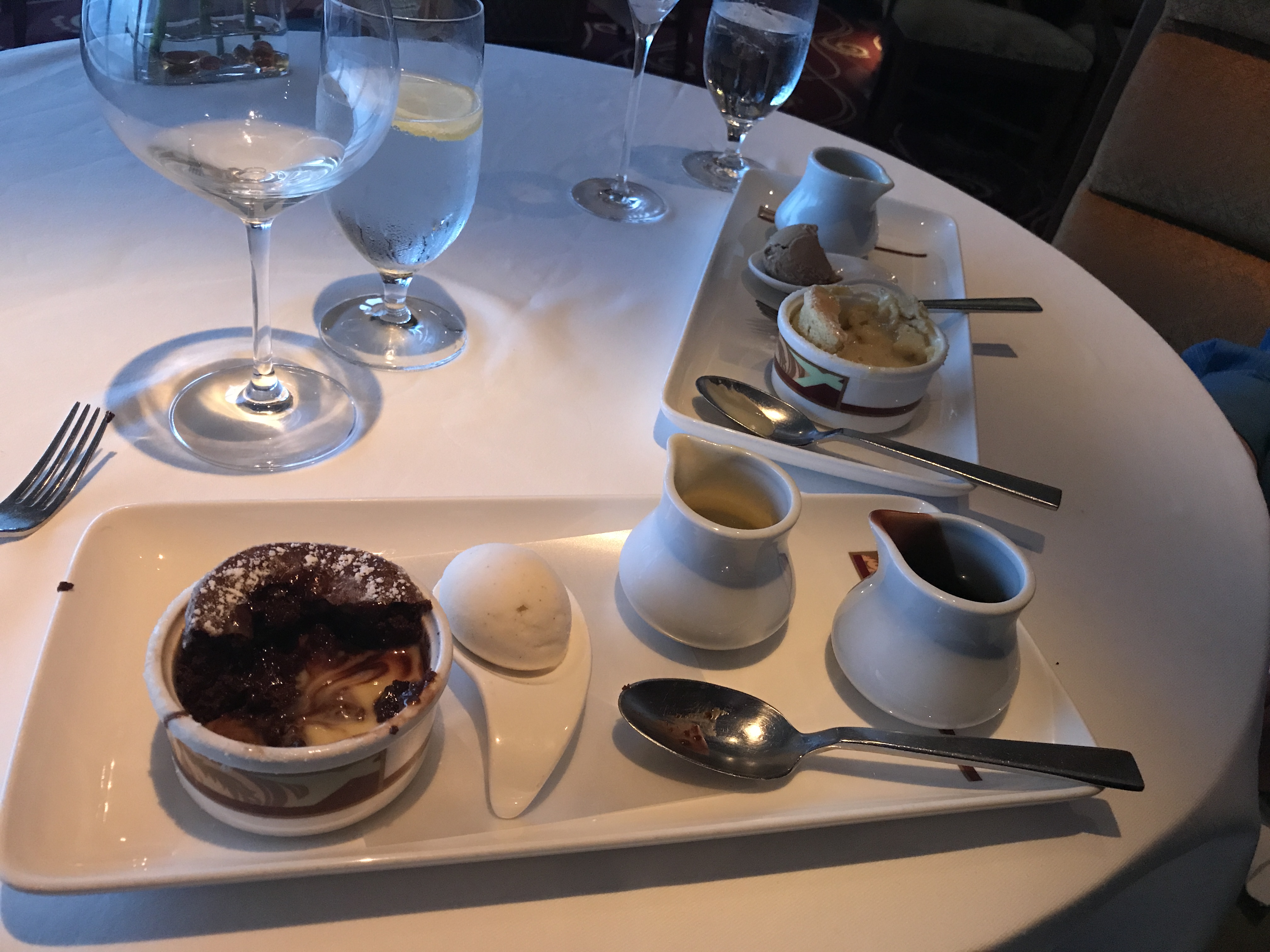 As our last course our server recommended the souffles which Palo is known for. They initially only had a chocolate version, but recently have added an amaretto version. So we ordered one of each and they were both fantastic. The chef even came out at the end to ensure everything had been satisfactory which was a really nice touch. With our stomachs bursting we slowly walked back to our cabin to relax for a bit before the fireworks show later that night as part of the pirate party.