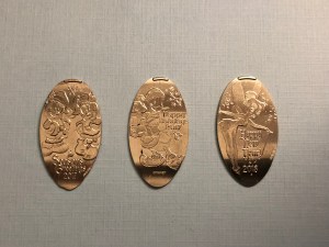 First up is the set available at Disneyland. The machine can be found at the Main Street Penny Arcade. The images include Season’s Greetings Mickey 2016, Season’s Greetings Olaf 2016, and Happy New Year Mickey Ornament 2017. Each coin also says Disneyland Park.