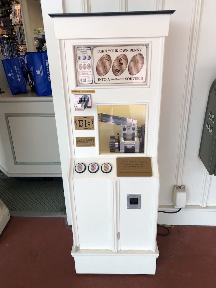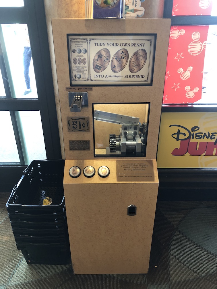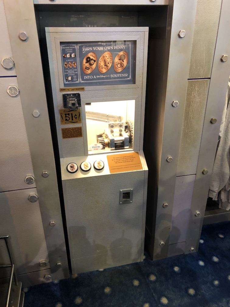 Inside this area is always packed with people but along one of the walls is where the penny machine can be found.  The penny here had a new 2019 design with Mickey in the Zero.