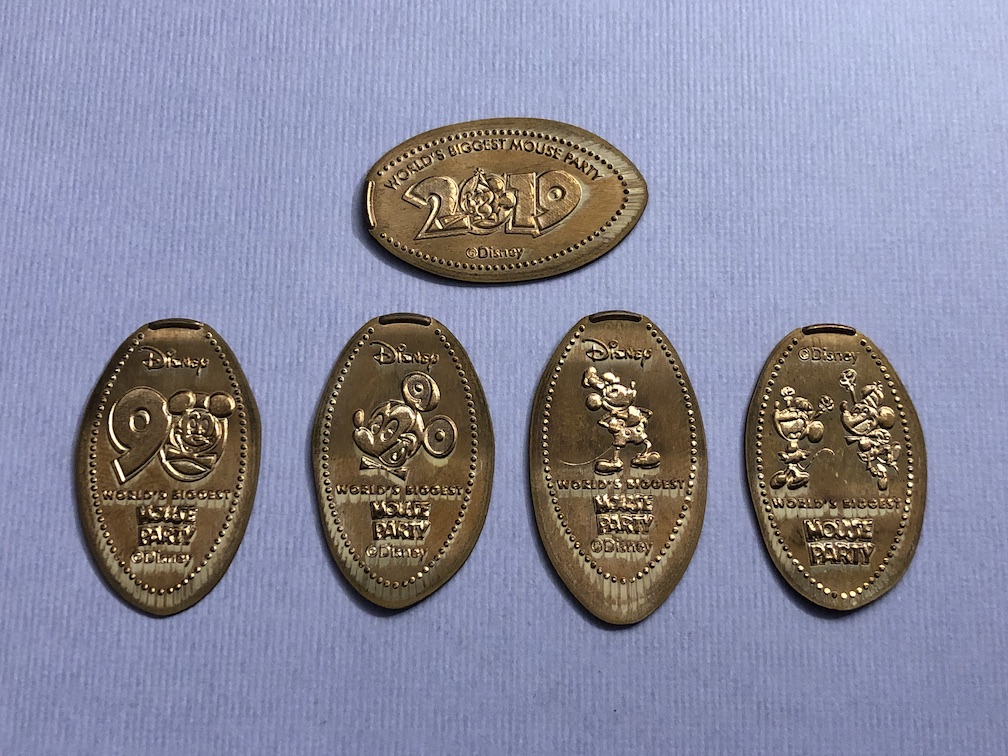 Now here we are celebrating his 90th birthday, and Disney has extended this celebration to all aspect of the park.  There are special merchandise, cupcakes, and even some special costumes for the characters.  But the most exciting release (at least for me) was that they had released five special Pressed Pennies.