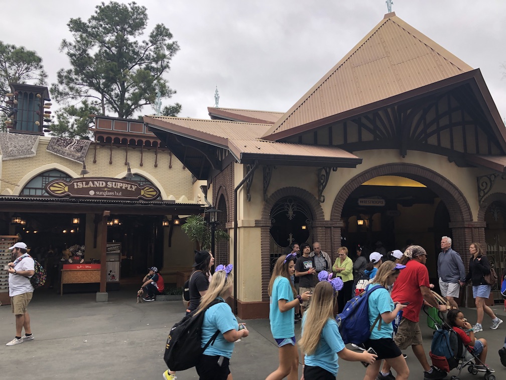 Just past the Skipper Canteen restaurant there is a store called the Island Supply.  Just before that is a place known as the Verandah Breezeway but this is basically where the restrooms are located in this section of the park.
