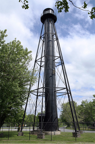 Tinicum Rear Range Lighthouse is located along the shores of the Delaware River in Paulsboro New Jersey. This 1880s lighthouse features a steel skeletal structure that reaches 85 feet tall. There are 112 steps to the top which houses the lantern room, watch room and keeper’s dwelling.