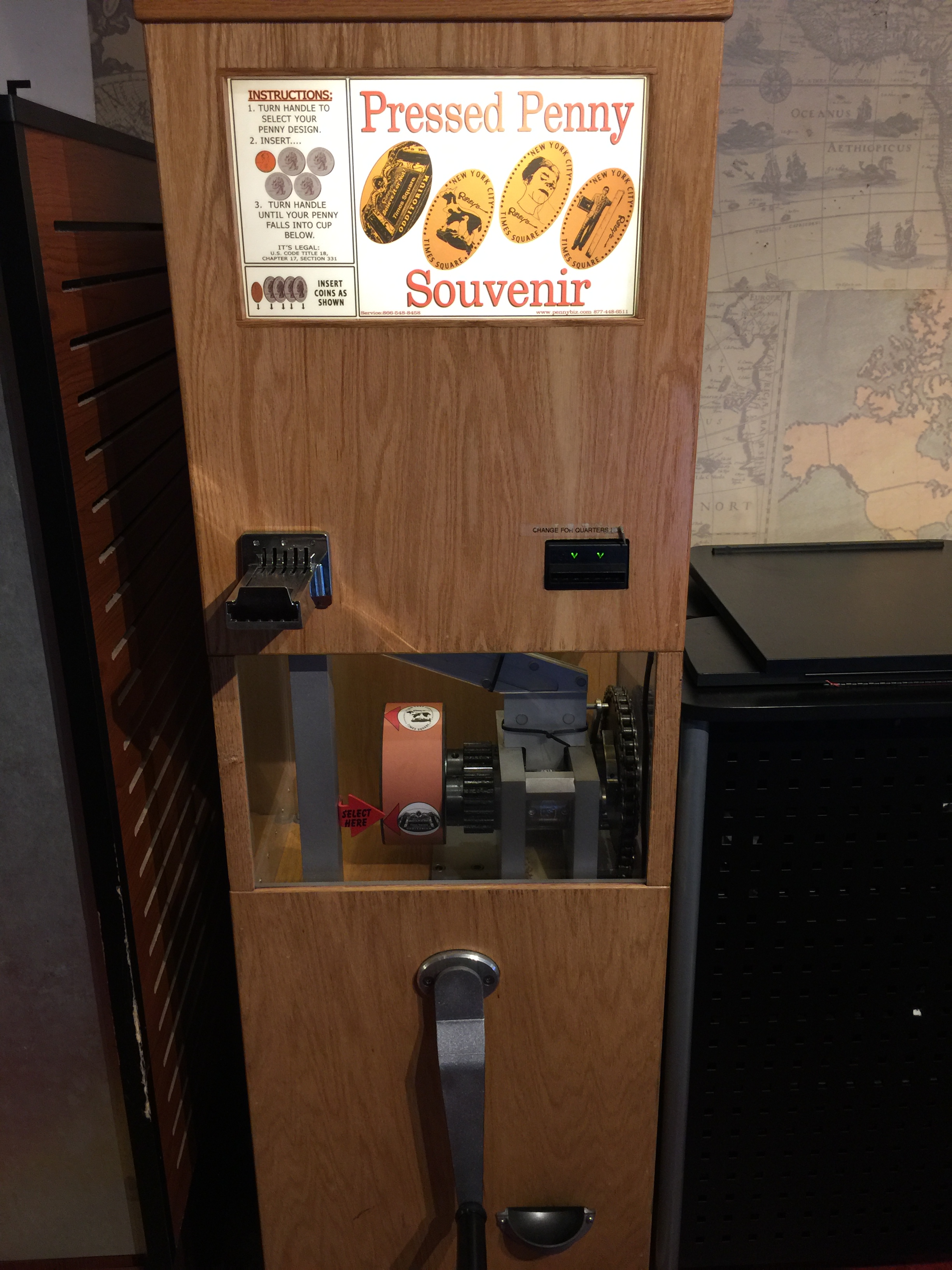 Inside there were more plans, and as you can see from the above picture even one of the ships propellers that made this monster craft move. Towards the far end was the Exploreum that has some interactive exhibits for the young (or young at heart) to play with. Over in a small alcove I found the next penny machine.