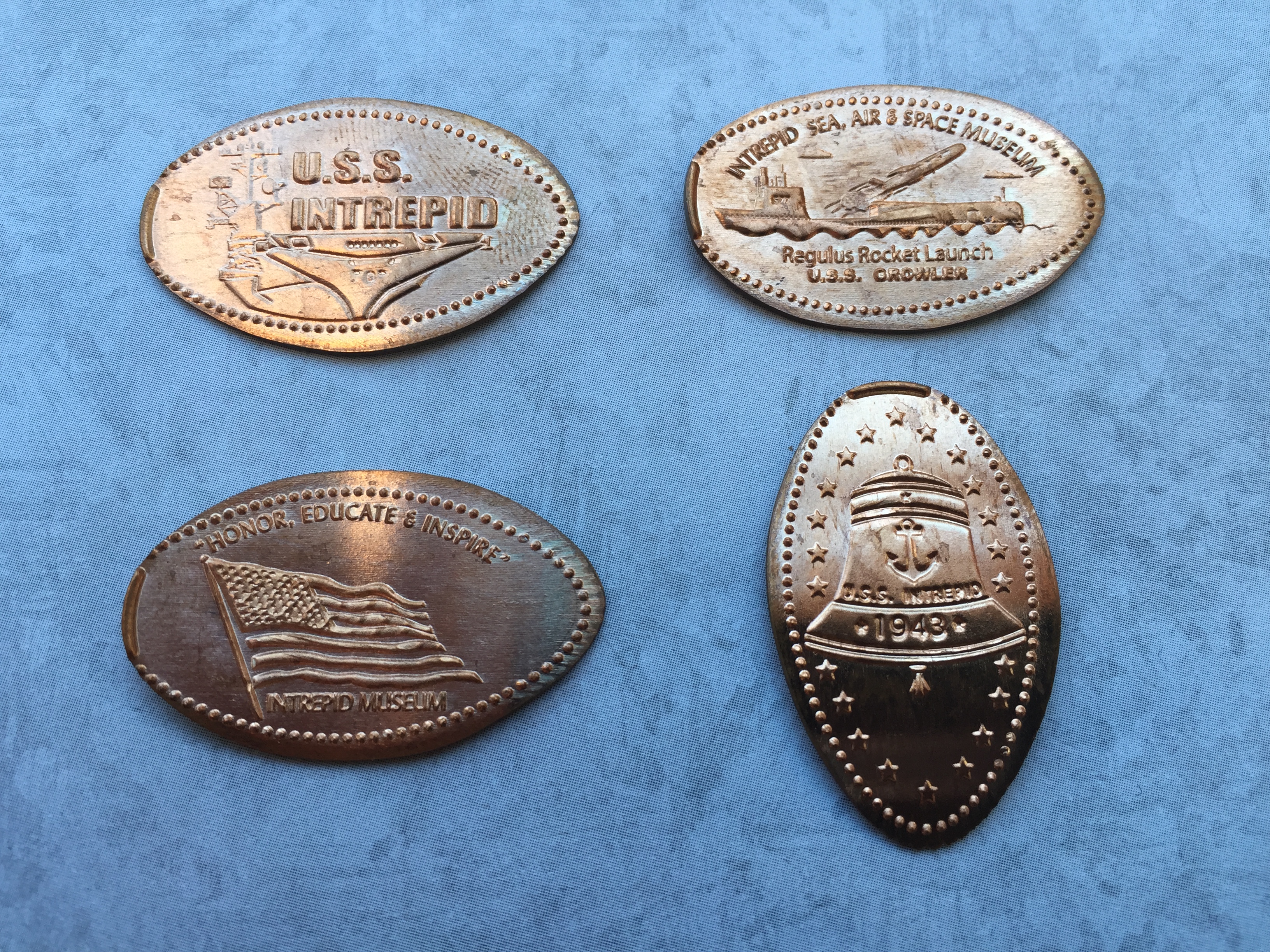 ** Updated: After I got back home I waited about a week and then sent my letter to the Intrepid explaining that the machine by the Concorde had been out-of-order and asked if someone would mind pressing me a set. I had included a set of quarters and pennies as well as a self-addressed stamped envelope to aid in returning them to me. I kind of forgot about it for a couple of weeks until one day I came home and there was a FedEx package on my front step. I opened it to find a very nice letter from one of the management staff at the Intrepid. They apologies for the machine not working and send me a set of the coins, but also returned my quarters and pennies because of the inconvenience. This just made my day and I always really appreciate when these placed take the time to help our their guests whenever possible. Thank you Intrepid Crew!!