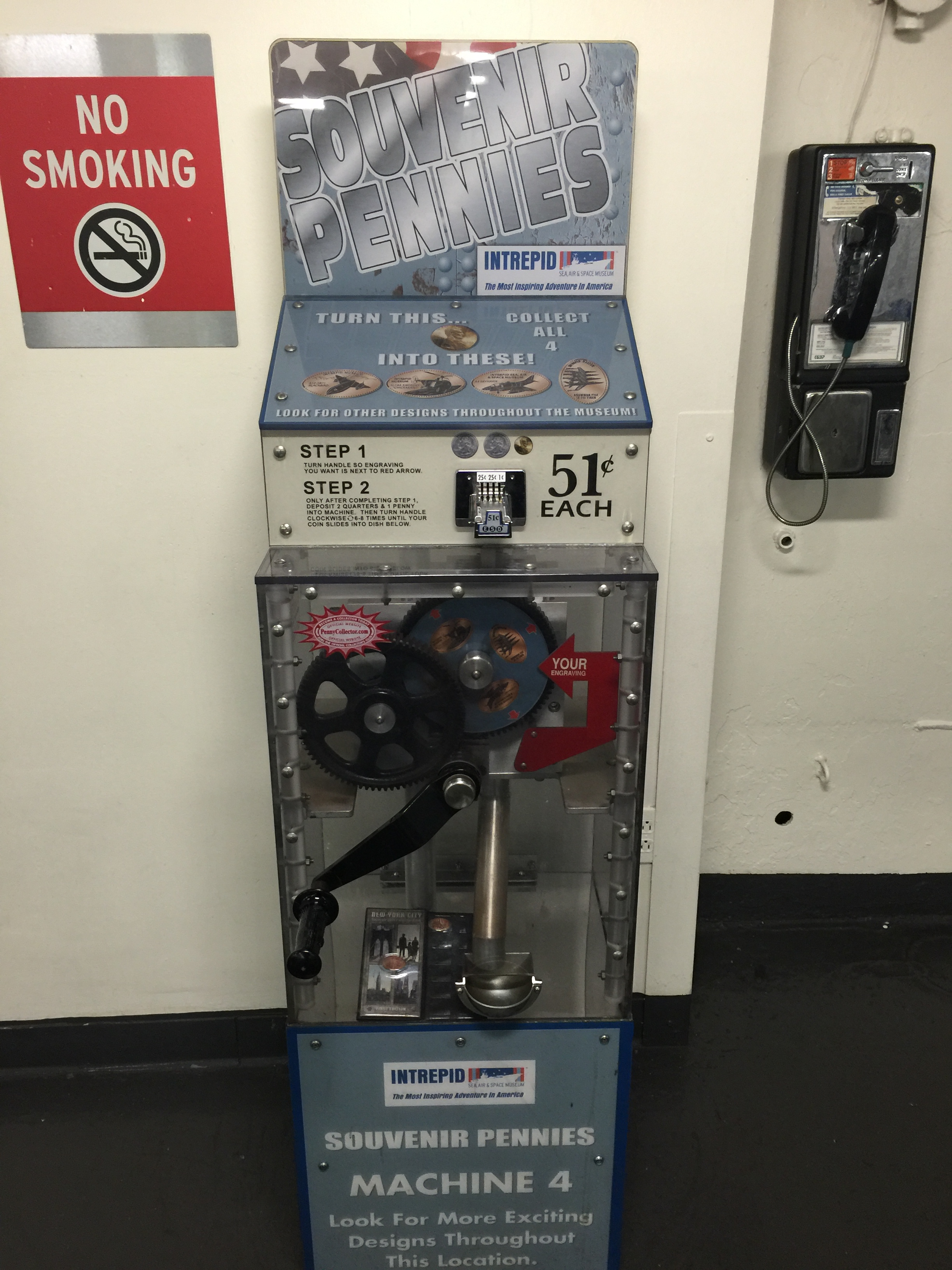 The images on these pennies were the Lockheed A-12, the H019A Sikorsky, the A4 Skyhawk, and the Grumman F11 Tiger. Apparently I wasn’t the only one looking for this machine. As I started to pretty my set there was another couple that entered from the stairwell and came right up beside me. We spoke for a little bit and I found out they were new to collecting pressed coins but were having a great time coming across machines throughout the city on their weeklong trip. I immediately welcomed them to the hobby and told them all about TEC (The Elongated Collectors) and Pennycollector.com for all their future trips. They were very thankful for the information which I’m always more than happy to pass along.