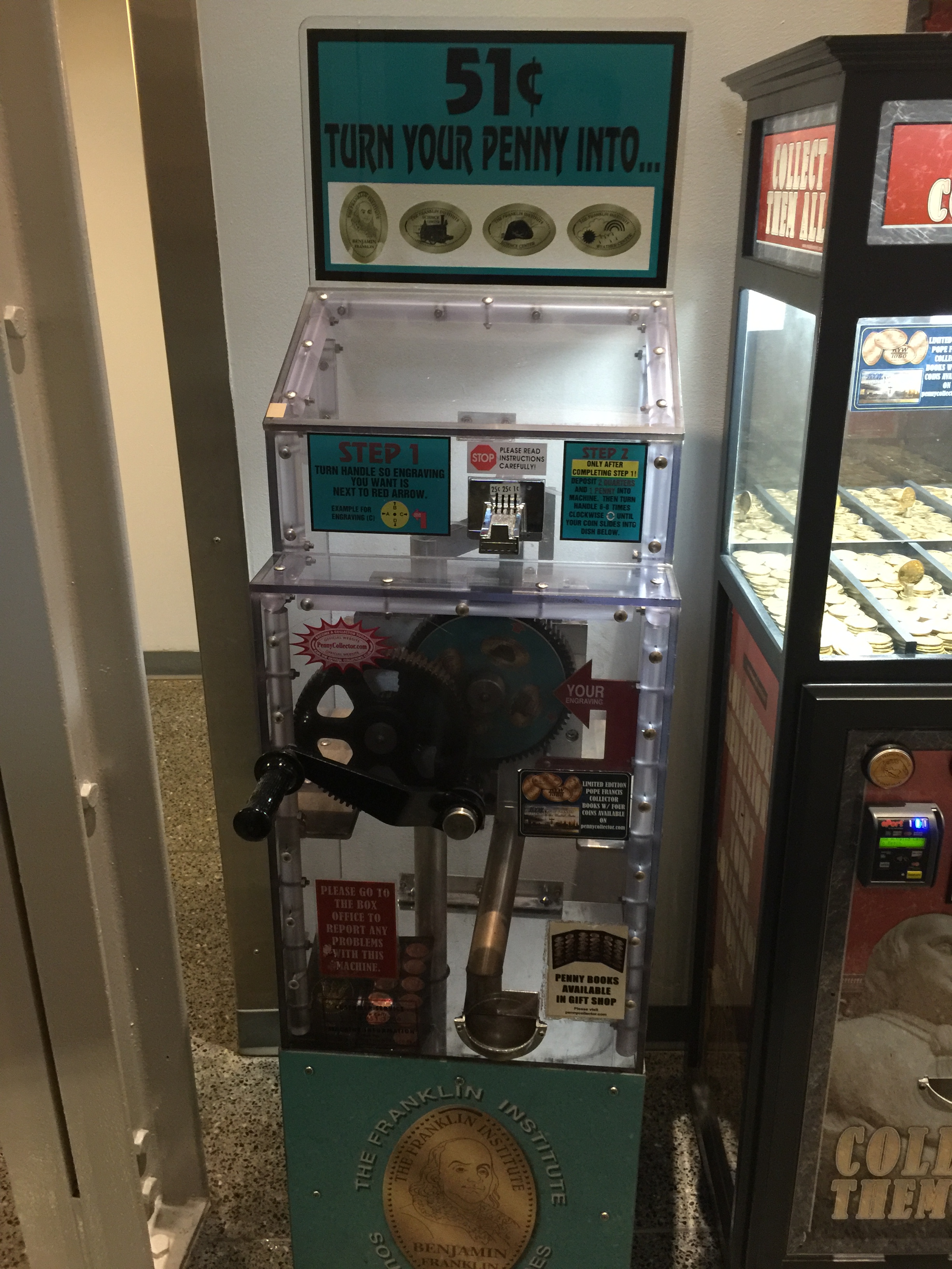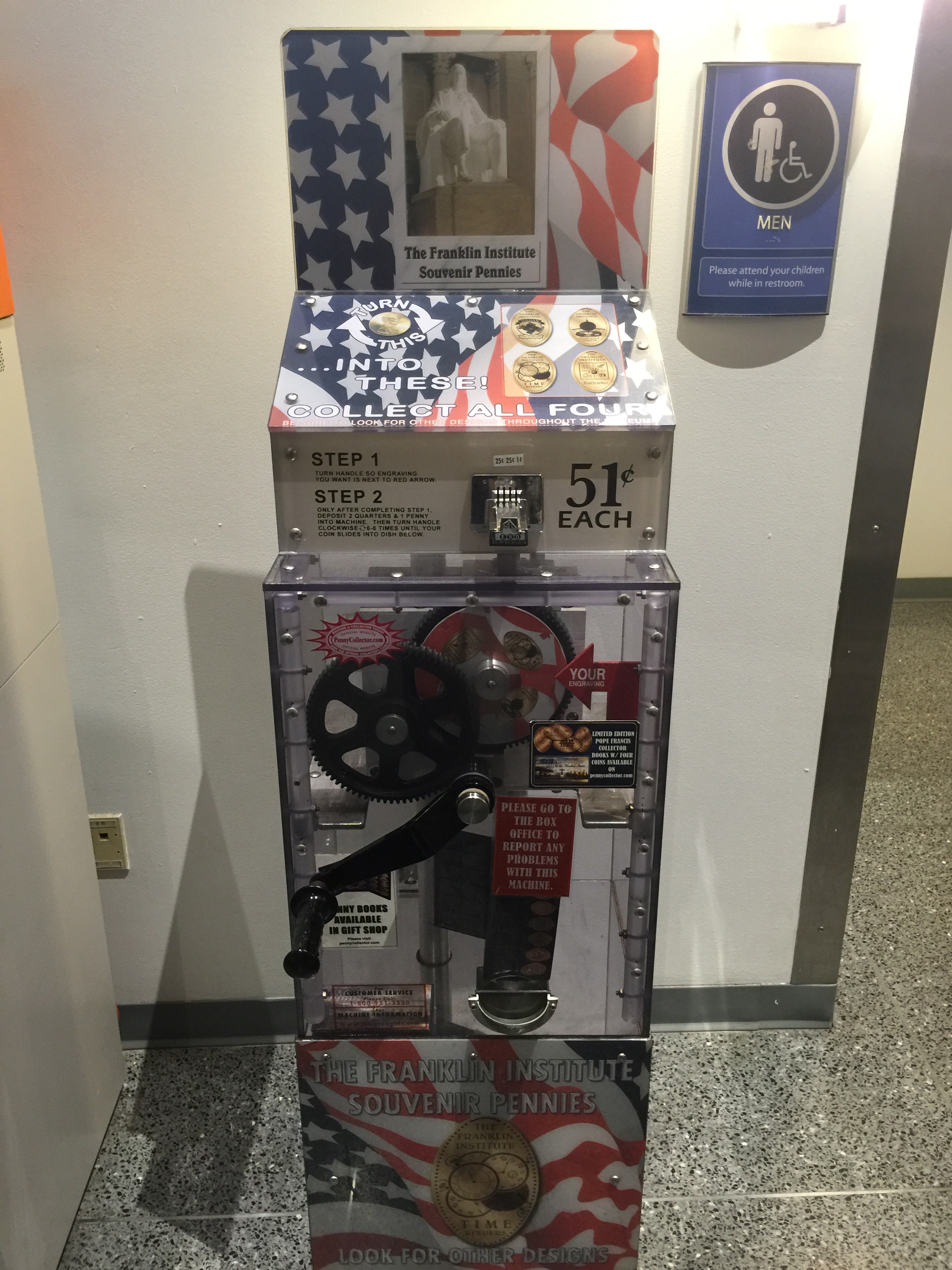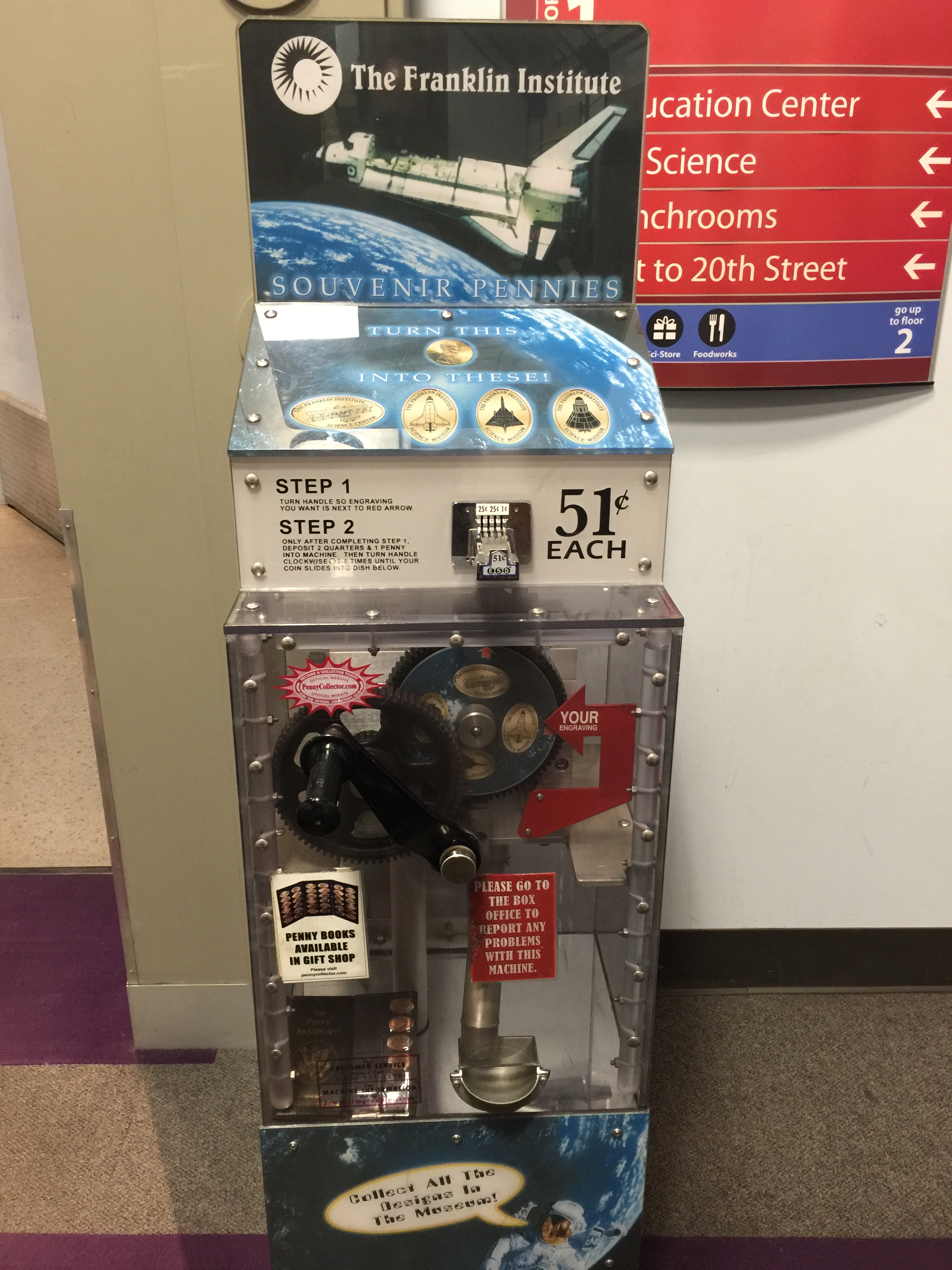 On a recent weekend trip into Philadelphia with my daughter we decided to go check out The Franklin Institute. We had visited this museum a year or so ago and my daughter really enjoyed all the interactive exhibits and of course all the other kids running around. I have always likes science museums and this is really one of the best ones I’ve ever been to. Plus they are notorious for having quite a few penny press machines, and was one of the first 8-design touch screen machine I had used (click here to read all about it).