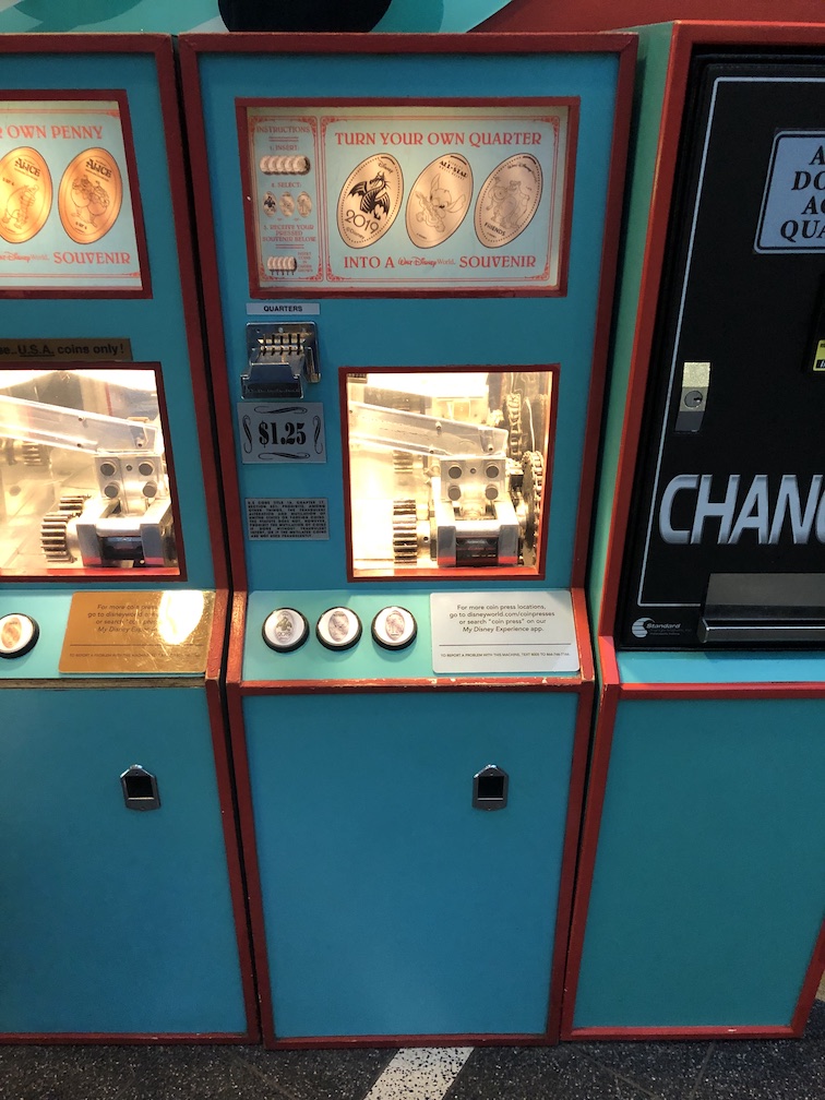 Before we go I did have a few items to go over. First you may be thinking, hey there aren’t any 2021 pressed quarters and you would be absolutely correct. I’ve chatted with some fellow collectors and we think they will be a thing of the past. The overall number of pressed quarter machines is very low at the moment and I do think they will eventually just be removed completely. Not having dated designs on quarters just seems to be another sign of that eventually happening. Next you may be questioning that we didn’t visit the All-Star resorts which have had dated designs the last few years. That unfortunately is due to those resorts not currently being open, they were shut down for Covid last year and are not scheduled to reopen for another few months and even at that time I believe only one will be reopening. I am anxious to get over there and check out the machines once they reopen and I’ll share all about what I find. Will there be more new 2021 dated designs there? Maybe, but I also wouldn’t be surprised to see a few new 8-design machines there instead. Only time will tell.