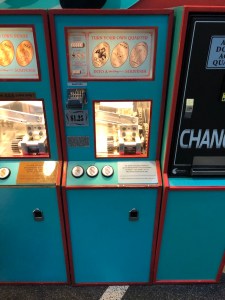 This machine is really amazing, and the wood carvings are so fun to look at. The detail is amazing, and who doesn’t like the giant crab on top holding a penny. Plus the little cup where the pressed coin drops out into is the mouth of a lion with some pretty intimidating teeth. The 2021 design you can get at this machine has Pluto on it, and also now costs $1 to press.