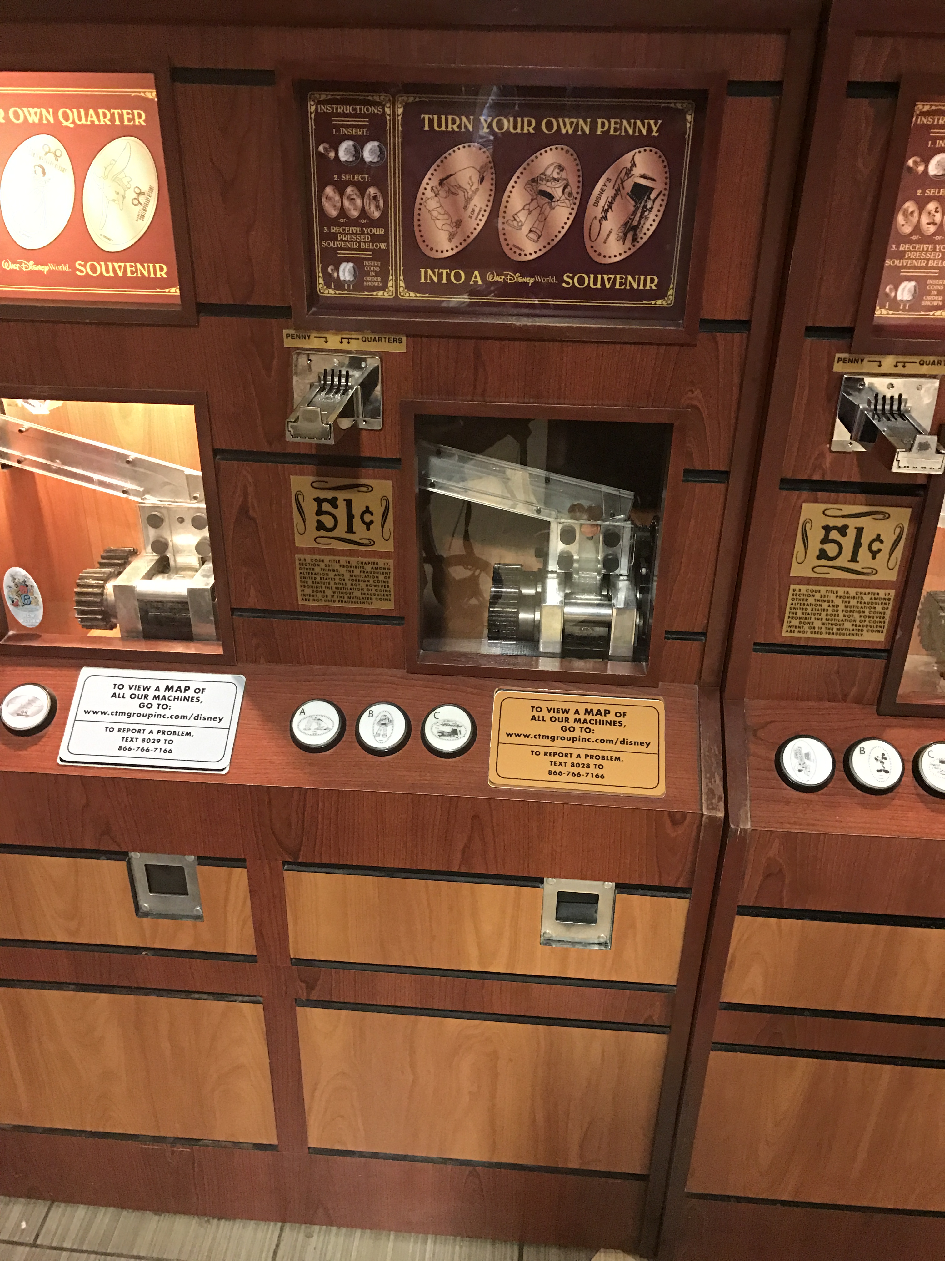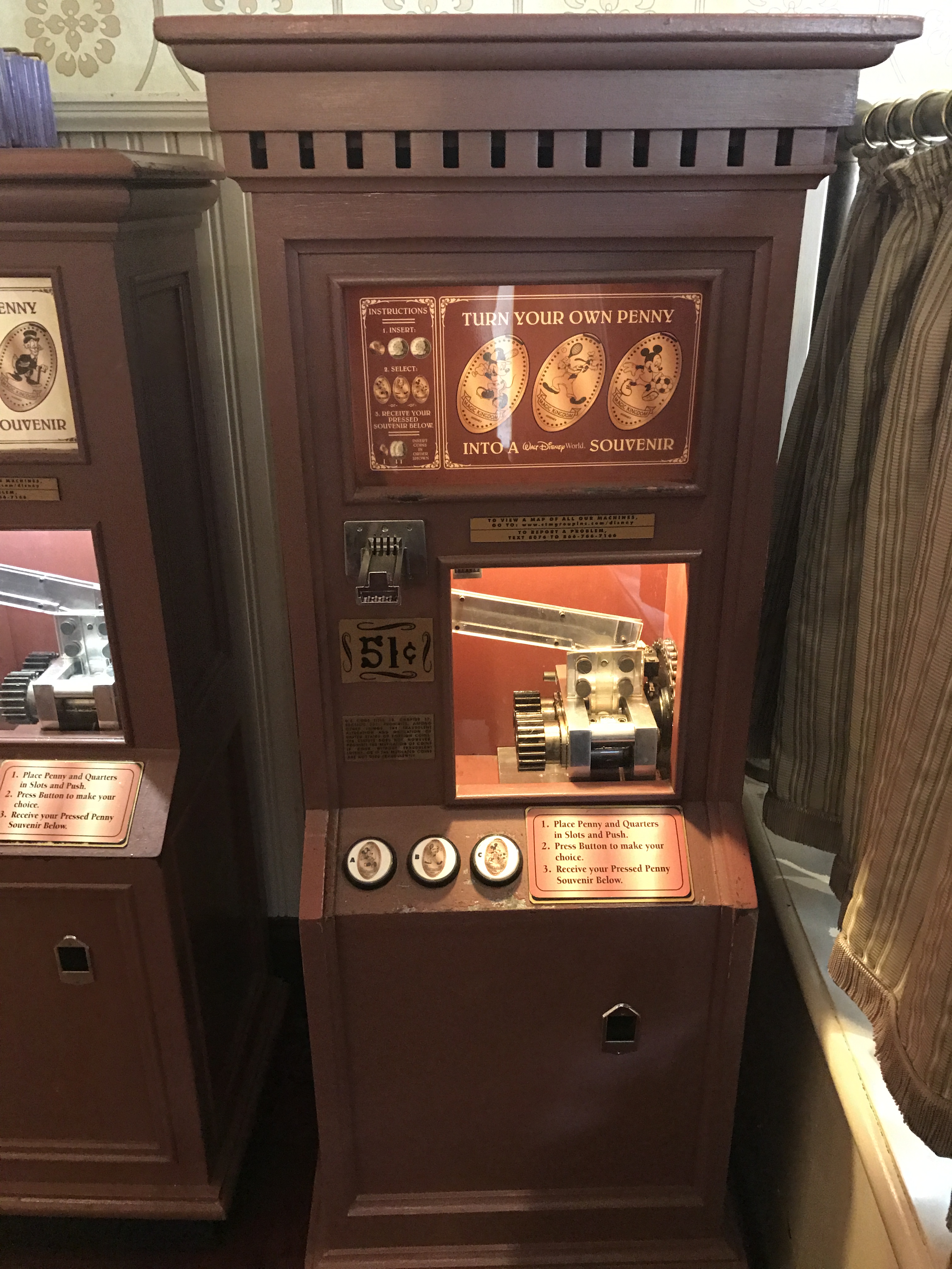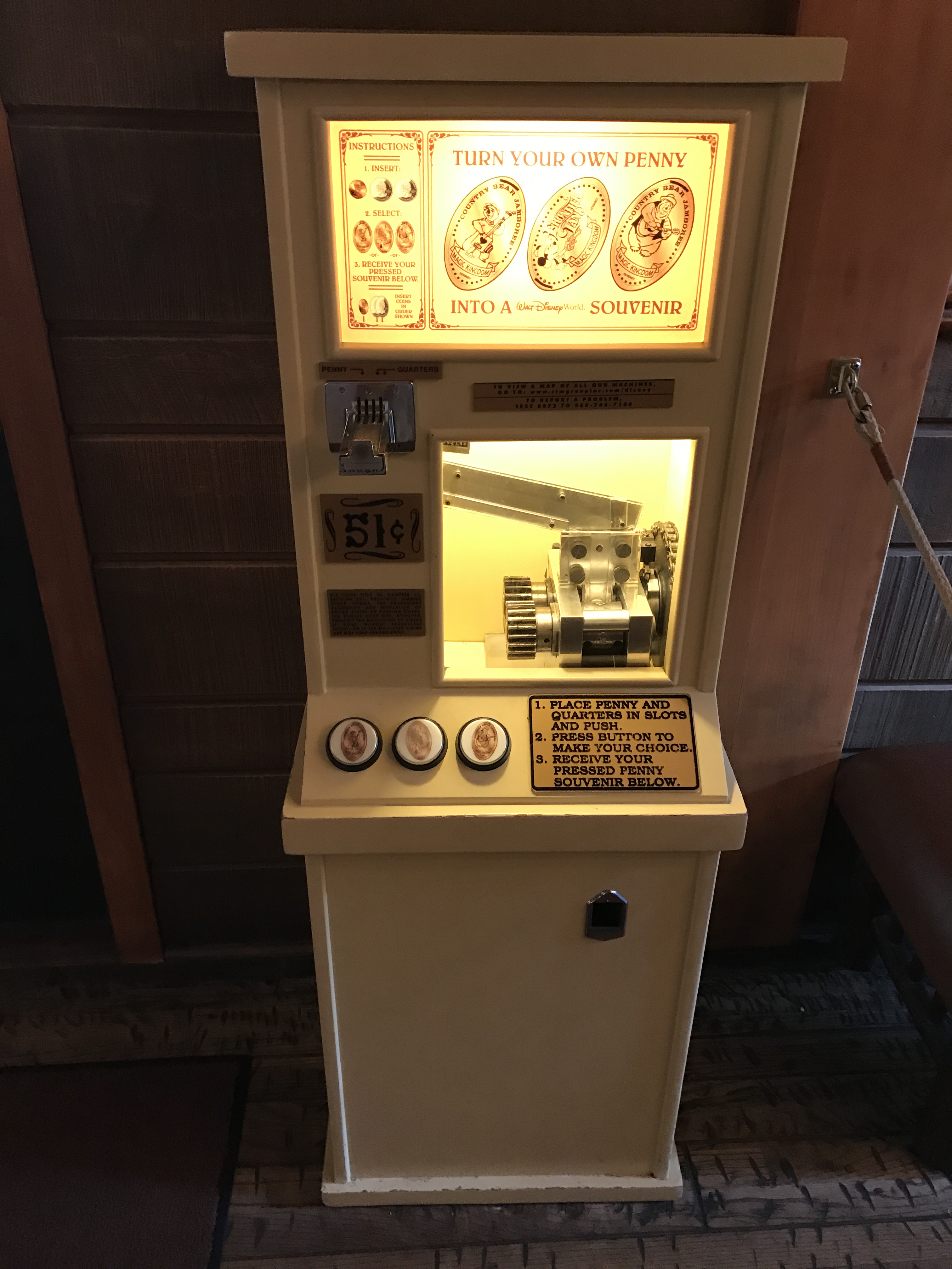 What walk down main street would be complete without a picture of the castle. I have hundreds of these pictures but just can’t stop taking more each visit. My family is definitely creatures of habit and every time we visit this park we always go clockwise through the different lands. I’ve mentioned starting with Tomorrowland but to us it just seems weird and we always head to Adventureland first. Jungle cruise is always a must, and our kids insist on riding Aladdin’s magic carpet ride. After hitting up these two attractions I needed to make two quick stops. First was the Verandah Breezeway (Also knows as the restroom area by the Island Supply shop) which has two machines available. These used to be separate machines but have recently been combined into one large cabinet.