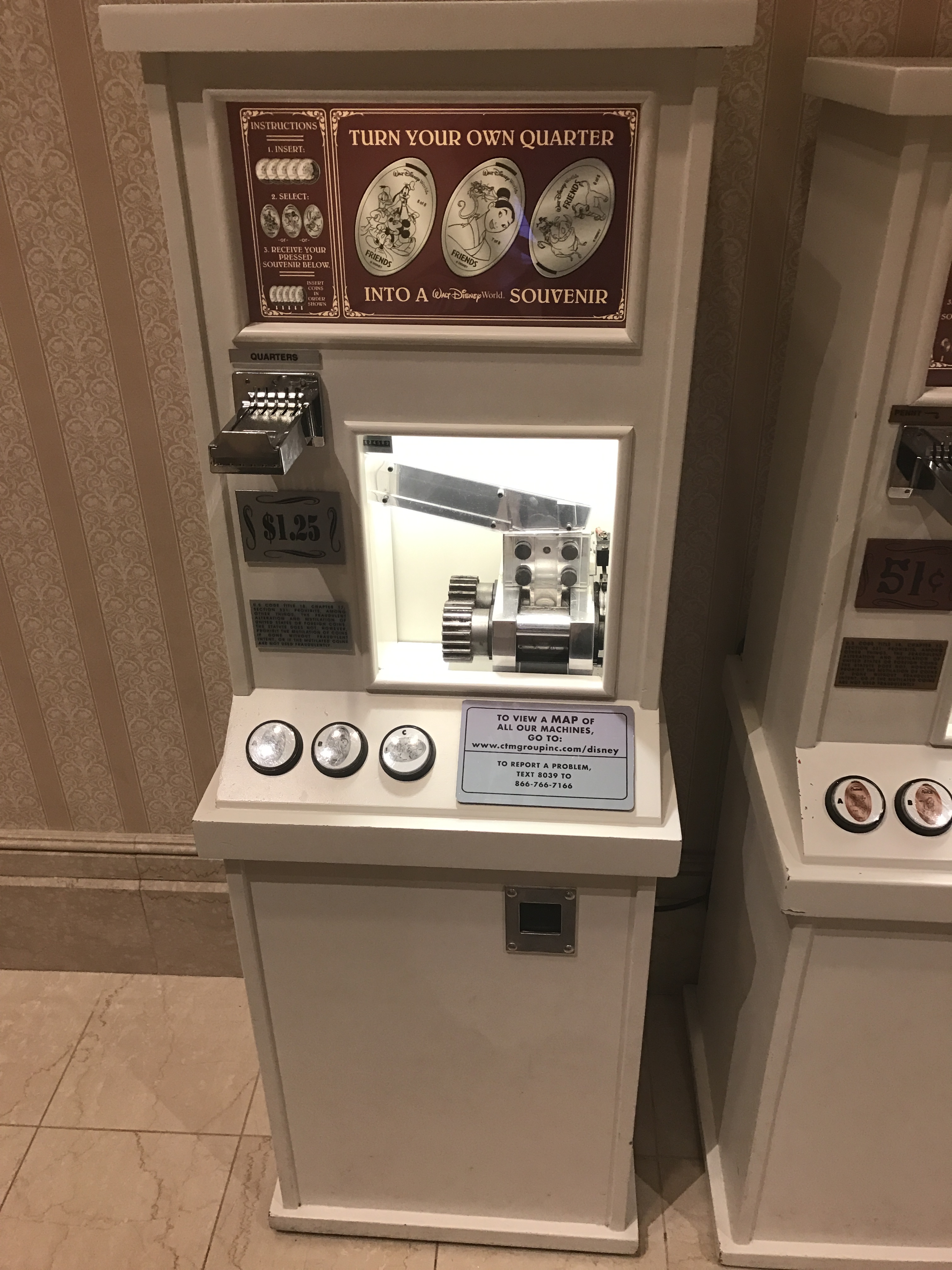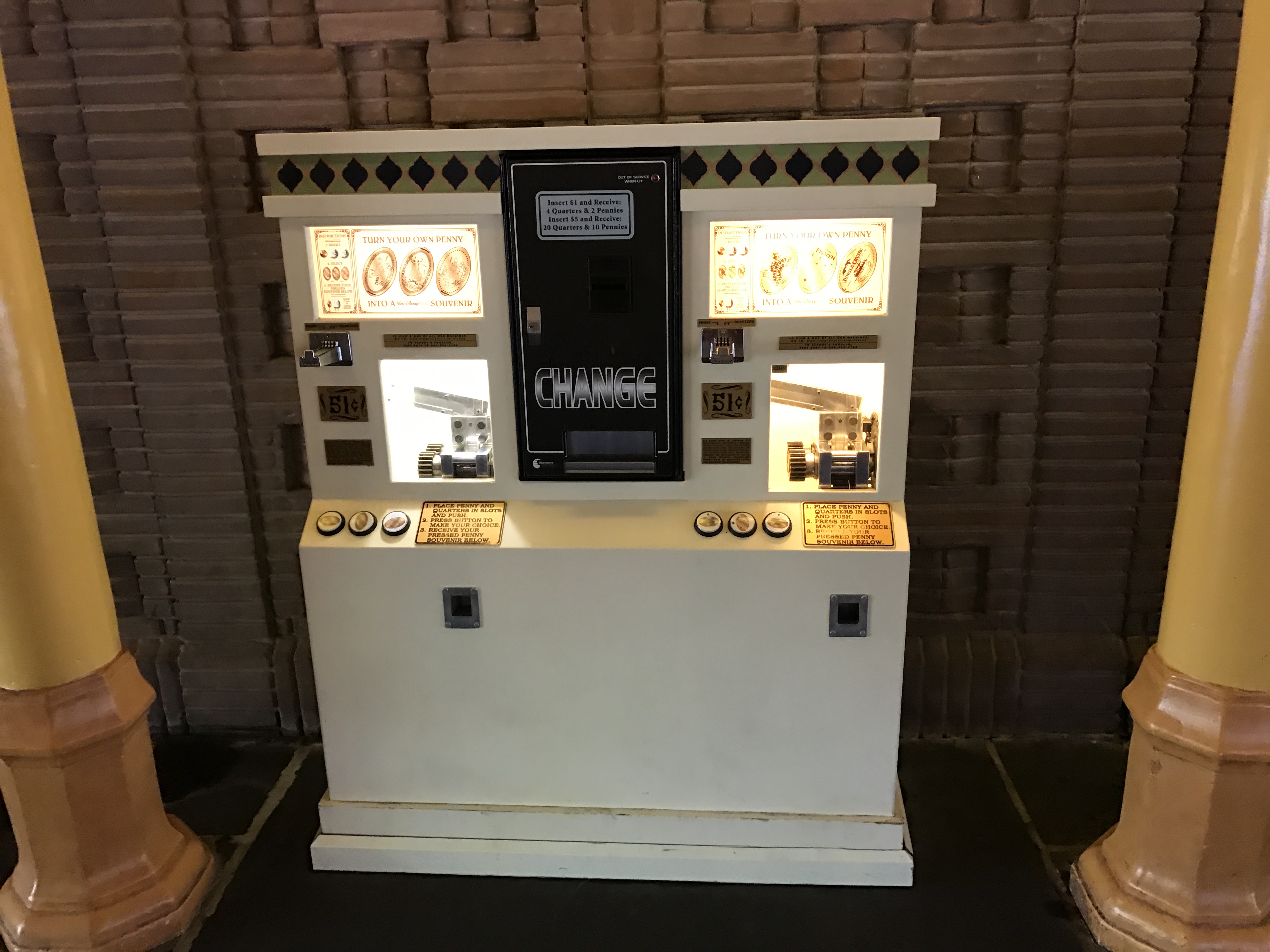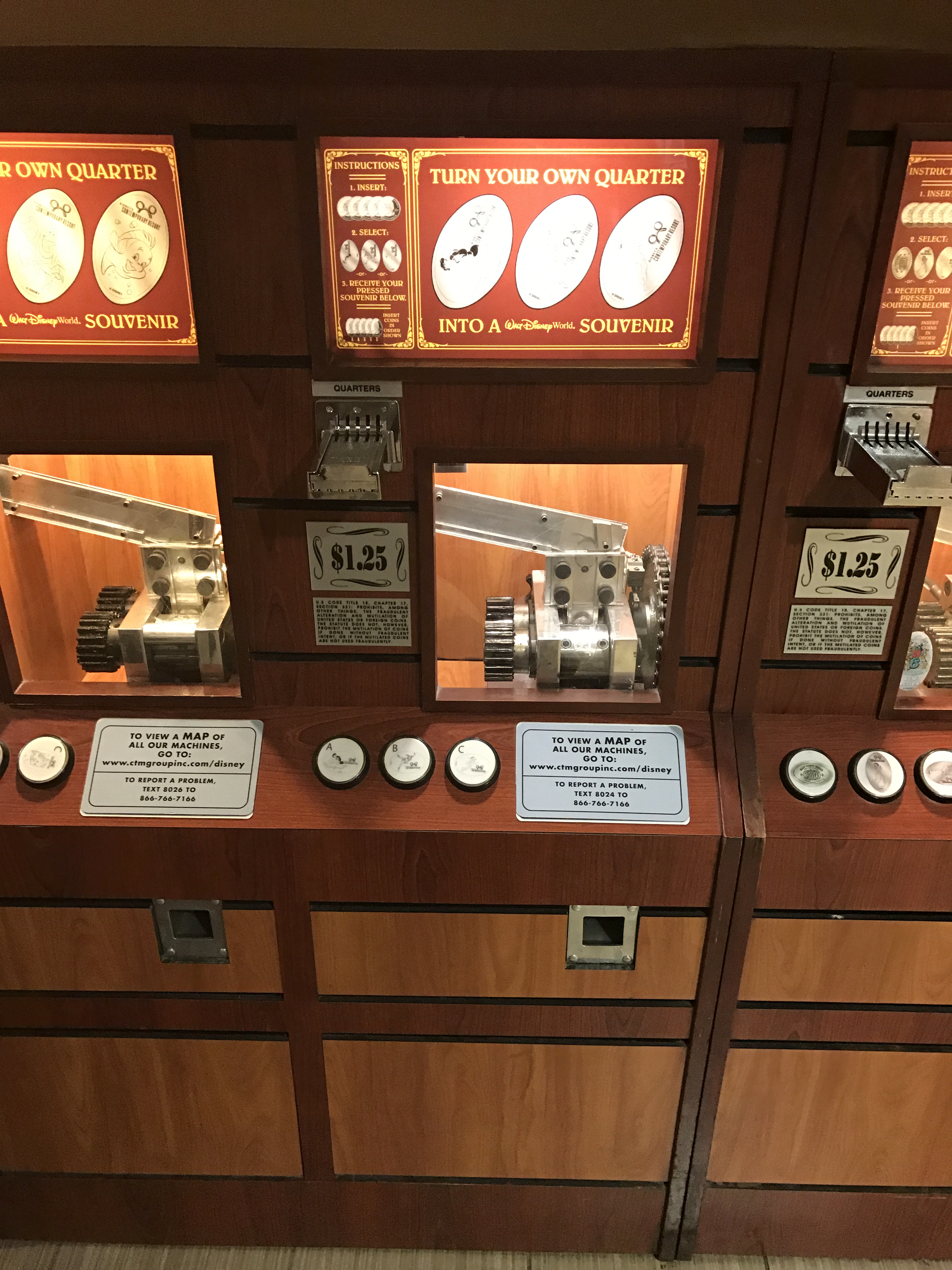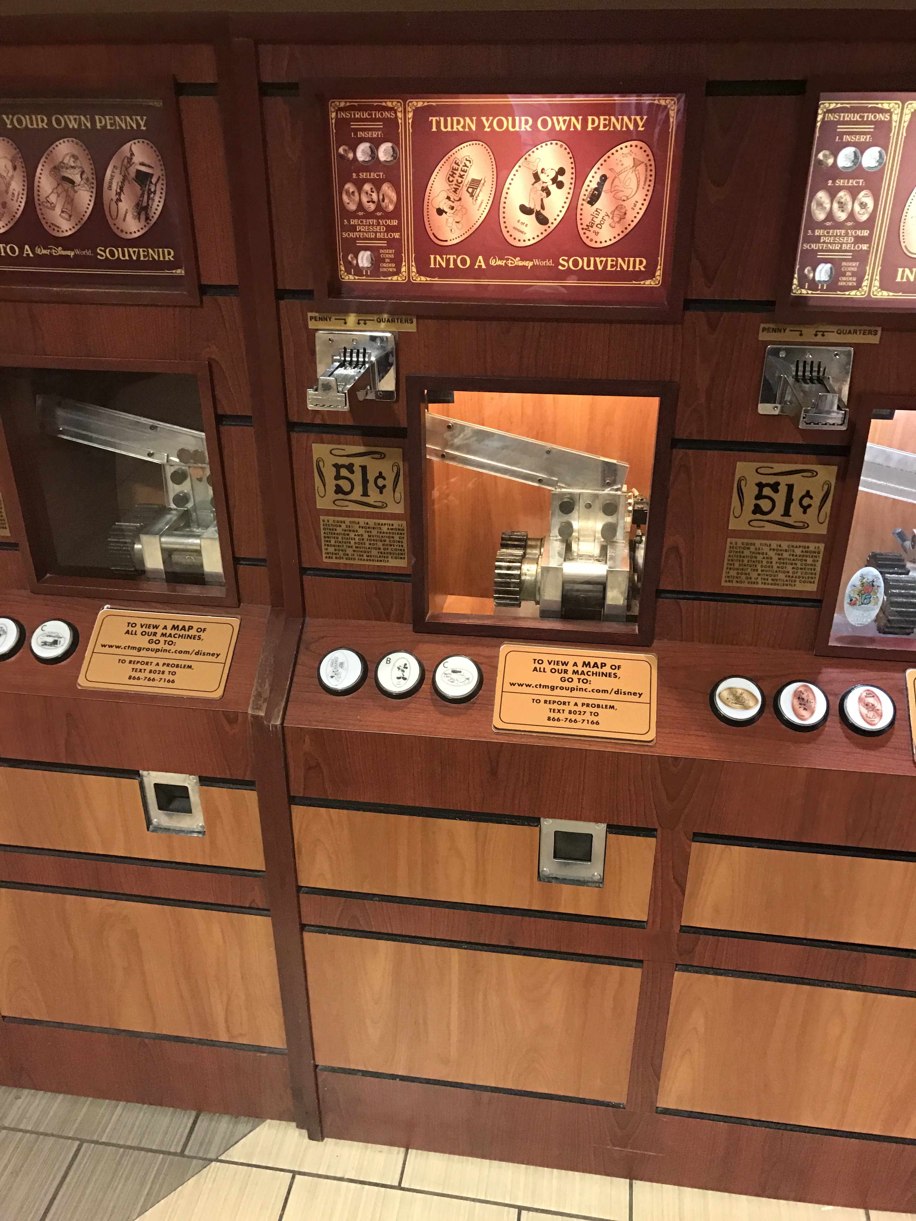 What walk down main street would be complete without a picture of the castle. I have hundreds of these pictures but just can’t stop taking more each visit. My family is definitely creatures of habit and every time we visit this park we always go clockwise through the different lands. I’ve mentioned starting with Tomorrowland but to us it just seems weird and we always head to Adventureland first. Jungle cruise is always a must, and our kids insist on riding Aladdin’s magic carpet ride. After hitting up these two attractions I needed to make two quick stops. First was the Verandah Breezeway (Also knows as the restroom area by the Island Supply shop) which has two machines available. These used to be separate machines but have recently been combined into one large cabinet.