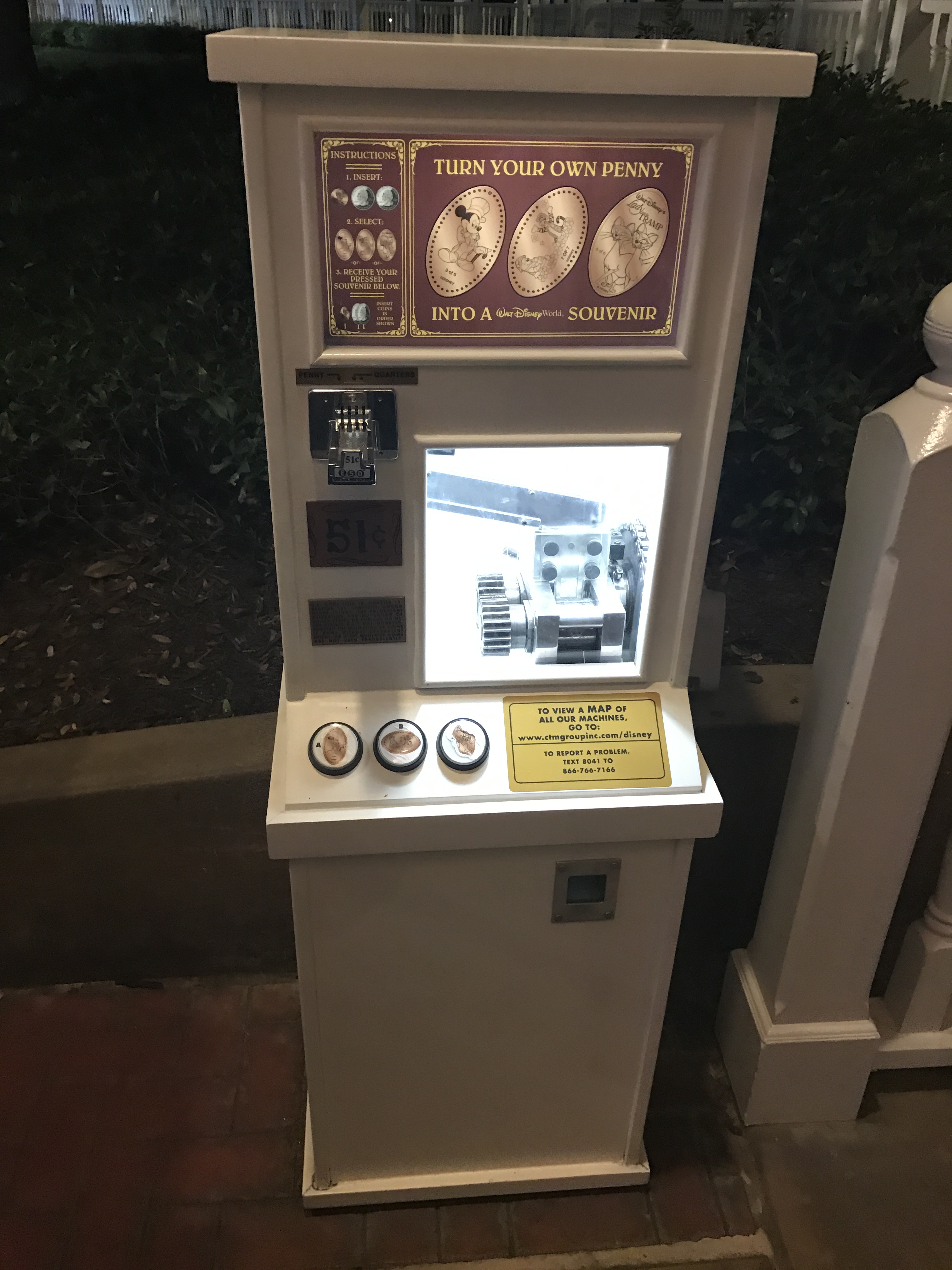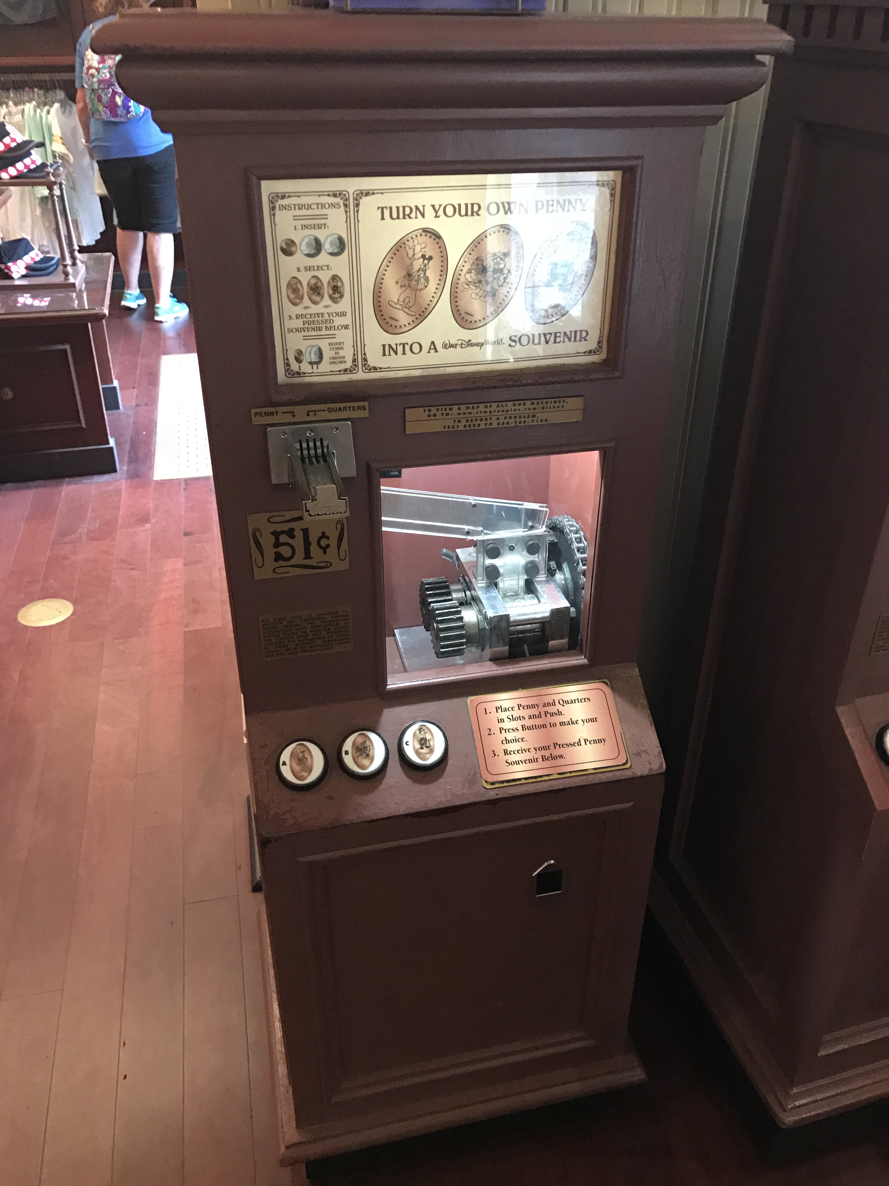 This machine has designs of Cinderella, Tinker Bell, and Peter Pan. As I finished using this machine the rest of my family had already headed towards main street.