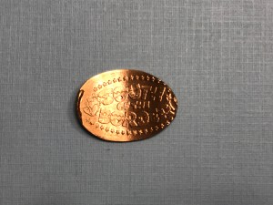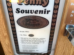 On the left is a close up of the marquee sign on the machine with instructions on how to use it. Since there is only one design you pretty much just put your coins in the slide and push it back. A few seconds later and your new pressed coins drops out the bottom. As you can see the finished coins did press a little short, but the design still came out pretty nice. There are notes on pennycollector.com that there is another machine in one of the restaurants but it has the same design. I didn’t have time to try to find it to confirm but their website is usually pretty accurate in my experience.