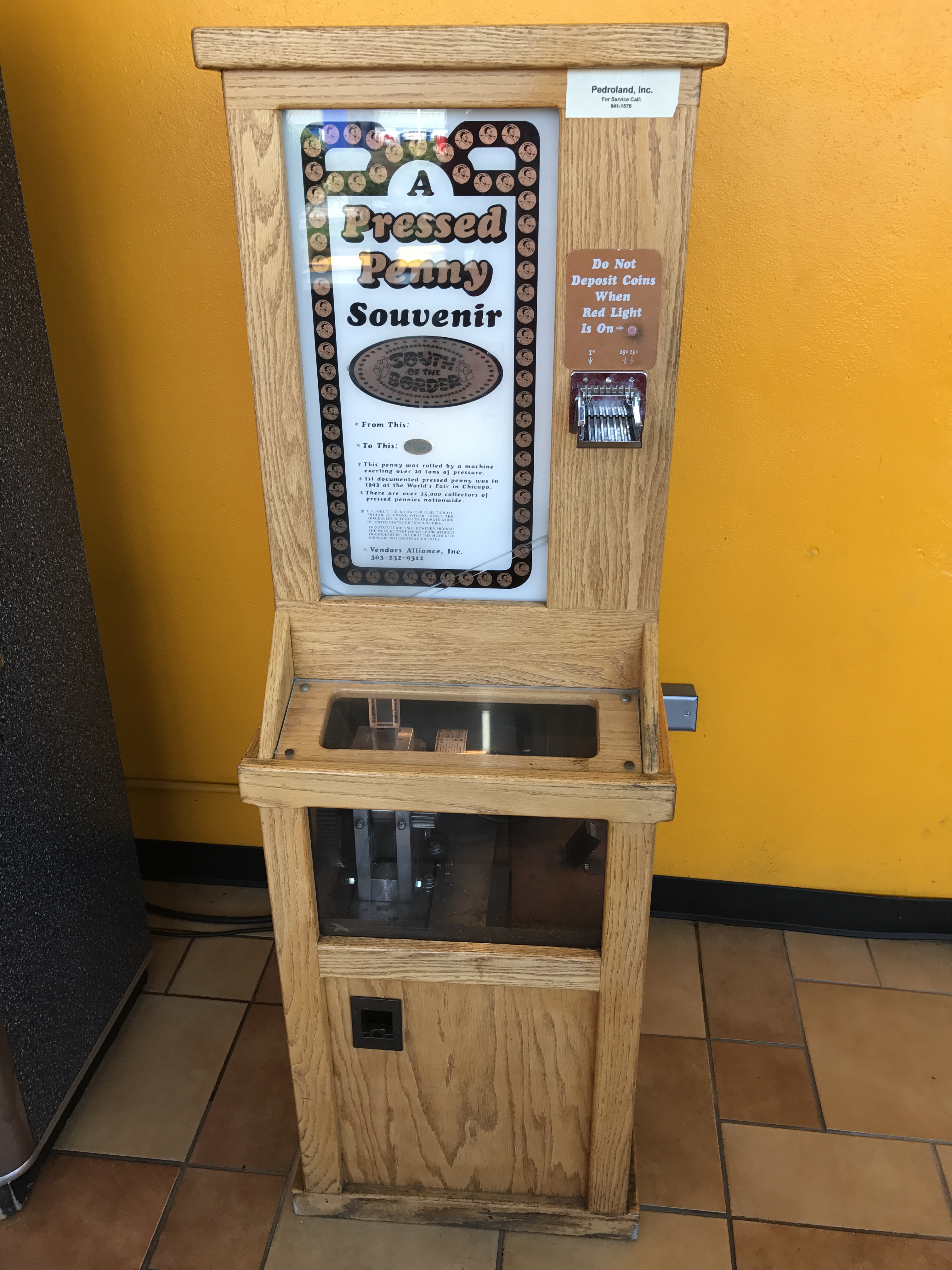 The penny machine that is located in this store is right inside the main door you enter when coming in from the parking area. It’s a 1 design electric press and still costs only 50 cents plus your penny.