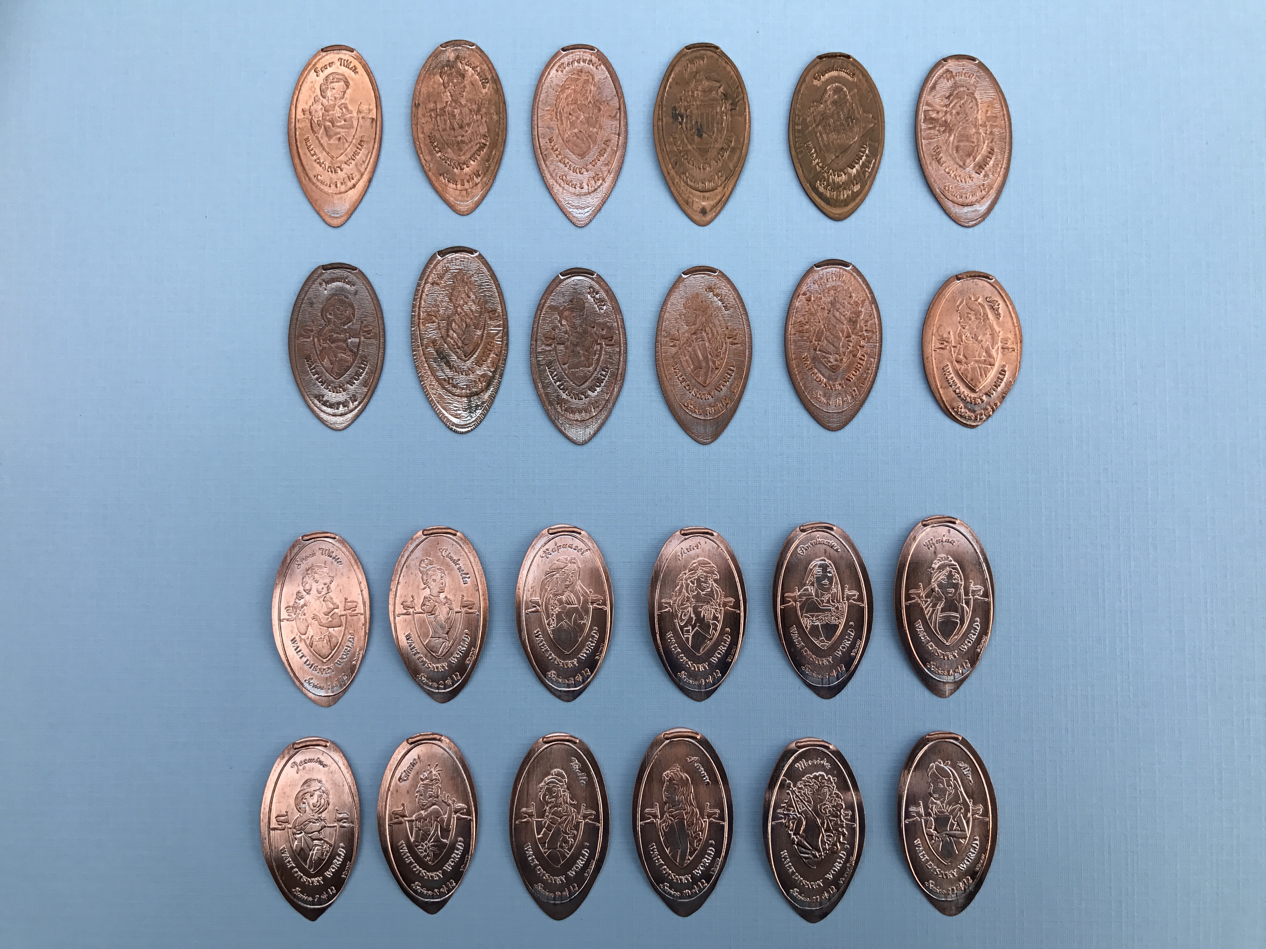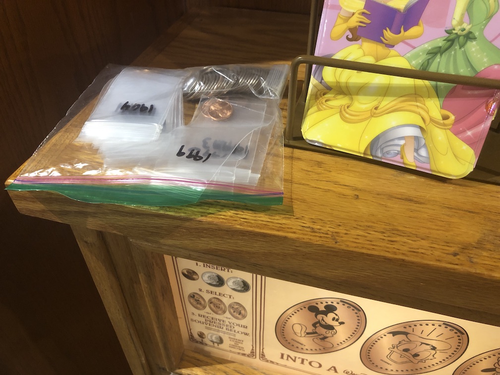 A few weeks before my visit I had placed numerous orders with many coin merchants to get as many Brilliant Uncirculated pennies starting with 1950 all the way through 2020. I had each penny stored in a separate little baggie with the date printed on the outside so that after I pressed each of them I would know which was which. I think the Cast Members in the store thought I had lost my mind as I pressed the exact same design 71 times. But they seemed happy just to have guests back in the store, and I actually kind of enjoyed being able to press some pennies again after being cooped up in our house for the last couple of months.