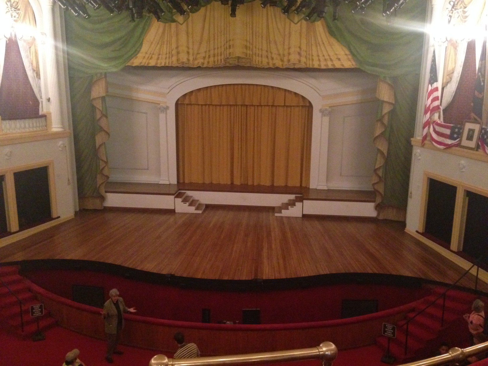 Tour tickets were free but you had to wait in line as they only allow groups of people in periodically to help keep the crowds inside manageable.  We only had to wait about 15 minutes before we were allowed to enter.  Since we had Hanna’s carriage with us we were allowed to skip the line and use the elevator instead of the stairs.  We checked out the museum first which displays the pistol and bullet that shot President Lincoln.  There were other exhibits listing the details and timeline of events that occurred leading up to the assassination.  Very interesting, but at the same time very morbid and almost seemed inappropriate to be gawking over all these items.  The museum was starting to fill up with the next group of visitors so we headed back to the elevator and headed to the actual theatre balcony.